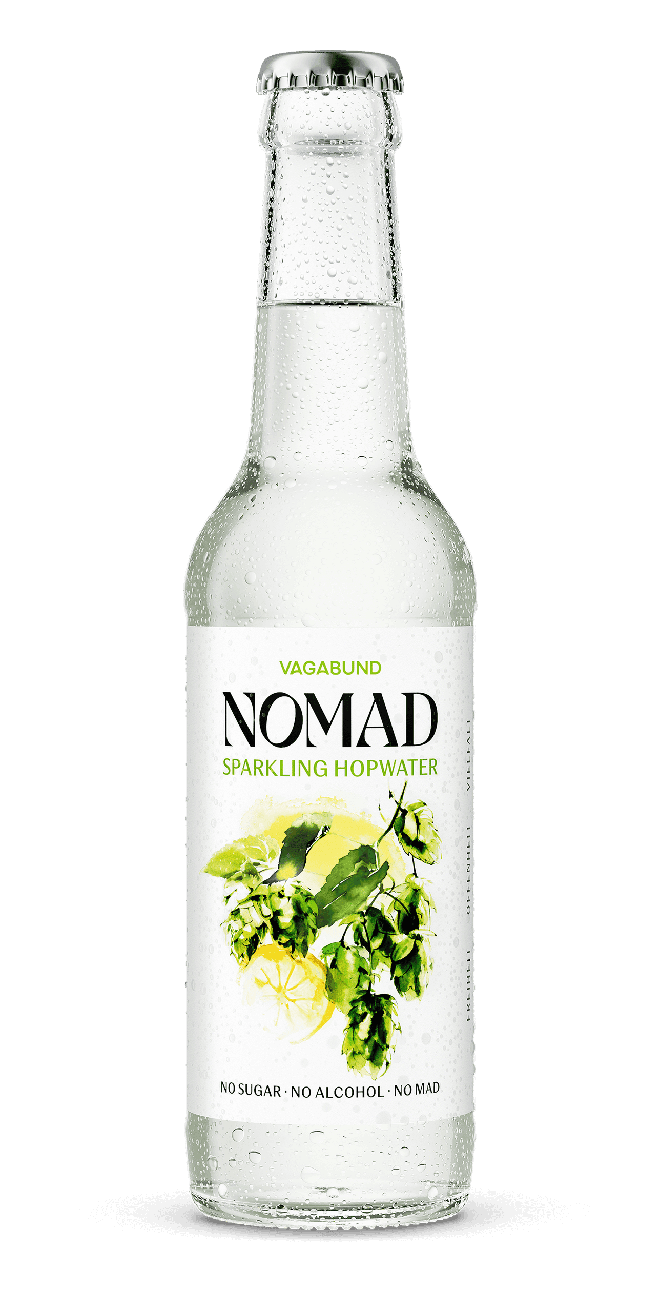 Nomad Hopwater ist Erfrischung mit Haltung: kohlensäurehaltiges Wasser, trocken gehopft, frei von Alkohol, Zucker und Gluten – aber voll natürlicher Balance.